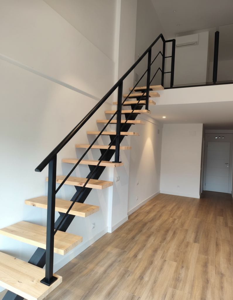 En viviendas tipo loft, la escalera no es un elemento secundario. Se convierte en pieza central del interiorismo. Y su barandilla debe estar a la altura.